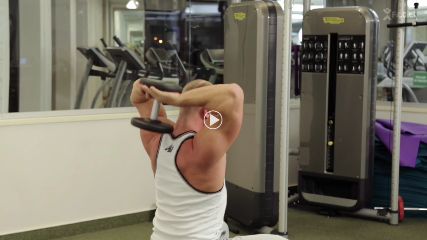 Көнүгүүлөрдү аткаруу техникасы жогорку блок аркылуу бицепске колду бүктөө (түз жана тескери кармоо)