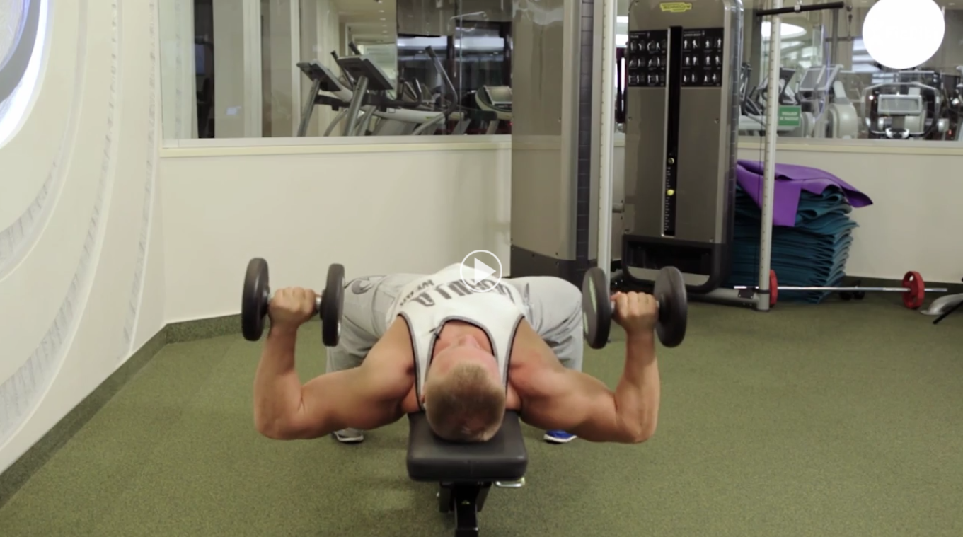 Көнүгүүлөрдү аткаруу техникасы жатып гантел басуу
