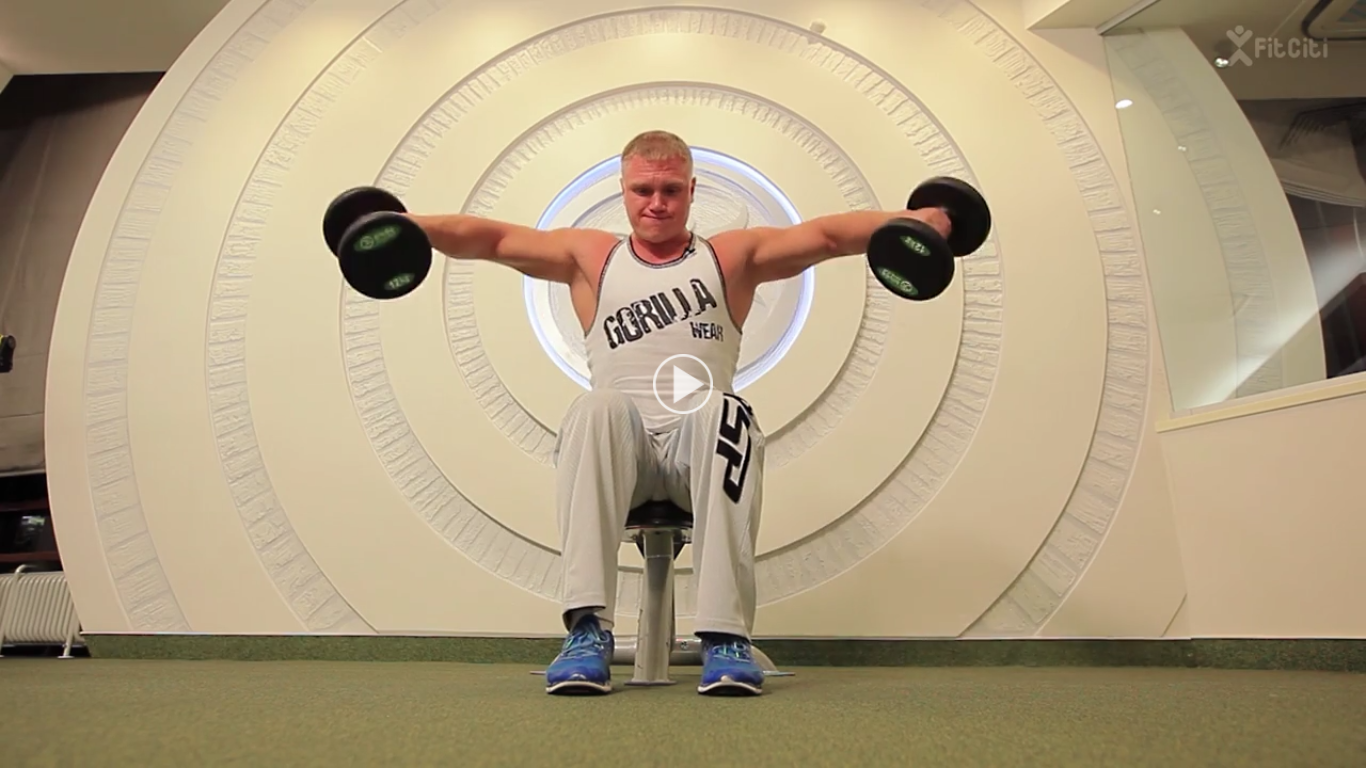 Көнүгүүлөрдү аткаруу техникасы, гантелди отуруп жактан көтөрүү