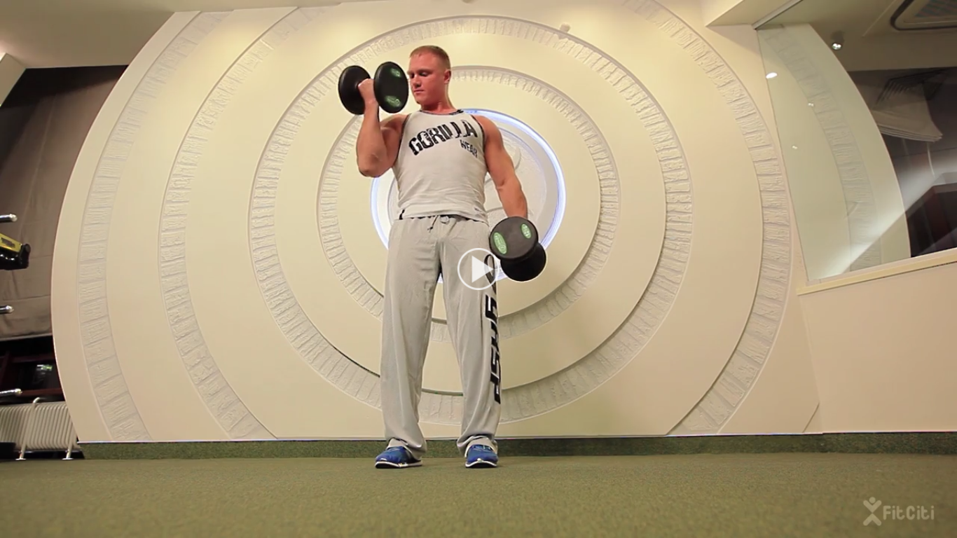 Көнүгүүлөрдү аткаруу техникасы. Гантелди ээгине чейин көтөрүү Туруп