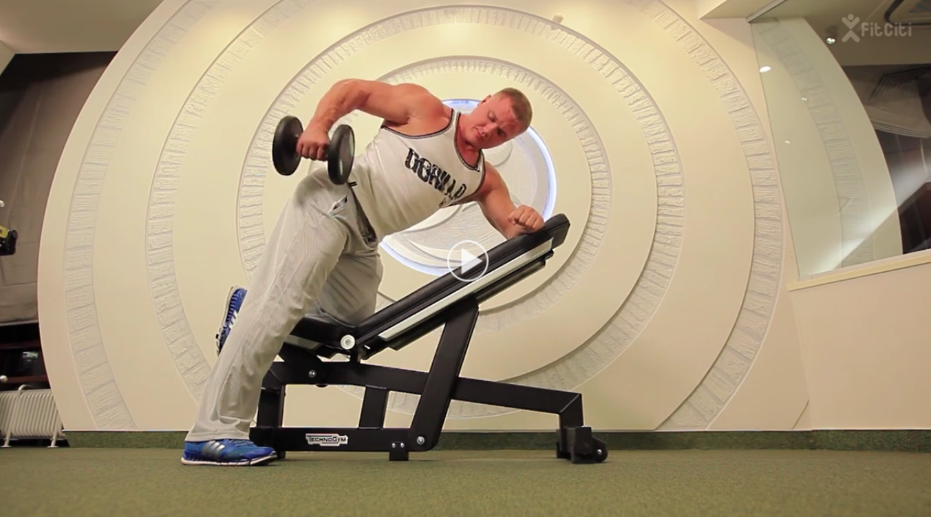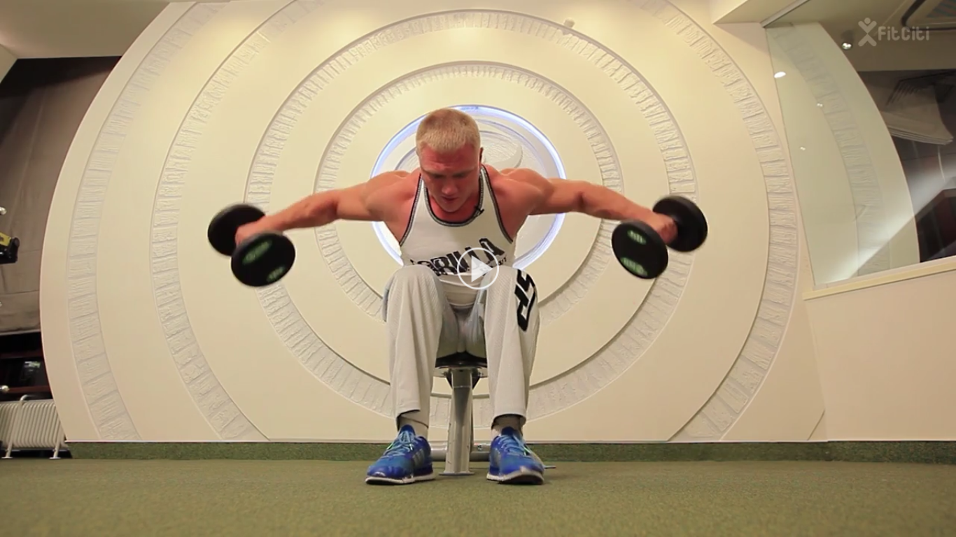 Көнүгүүлөрдү аткаруу техникасы отуруп гантел менен арткы дельта устунда иштөө