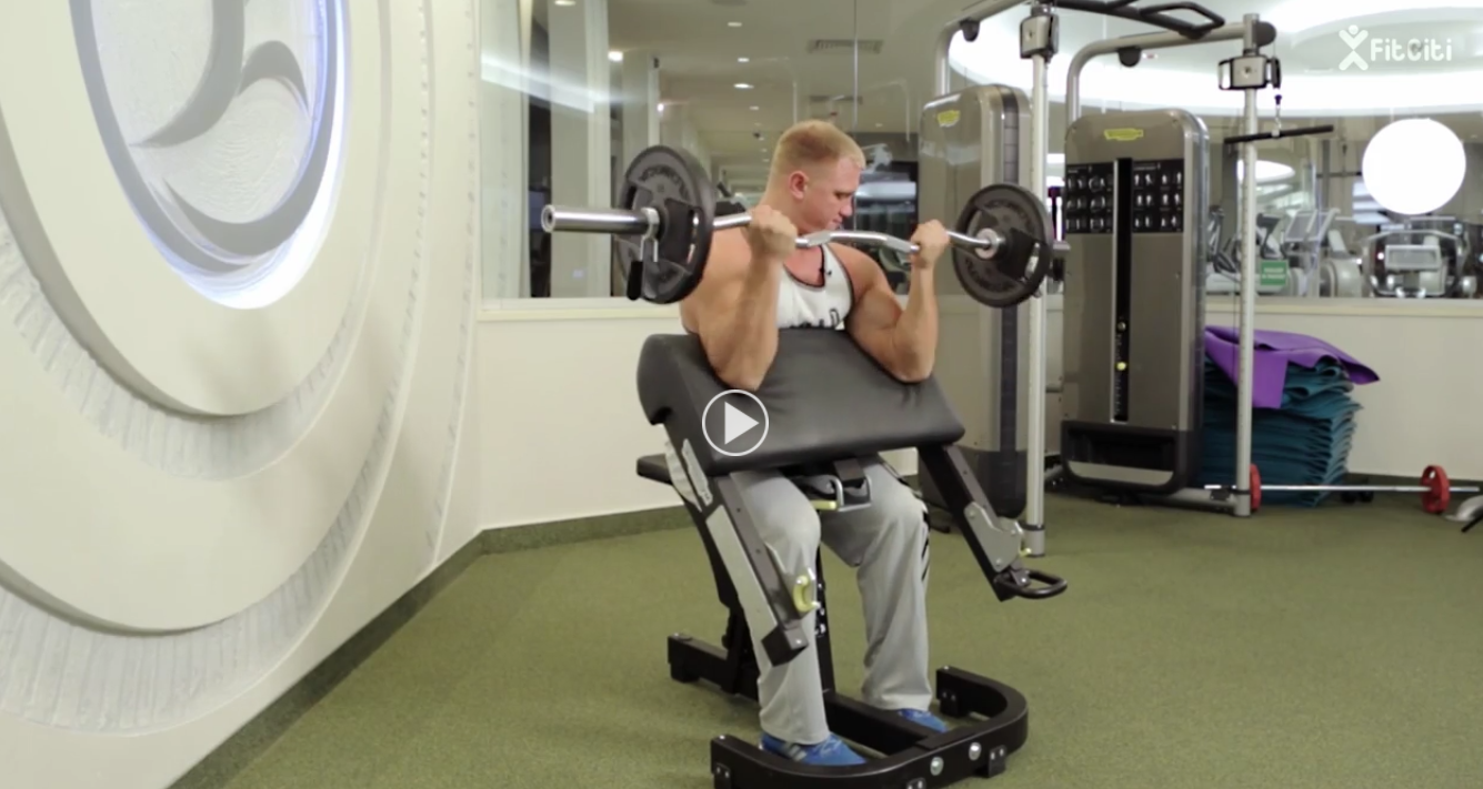 Көнүгүүлөрдү аткаруу техникасы. Скотт отуручта EZ гриф көтөрүү