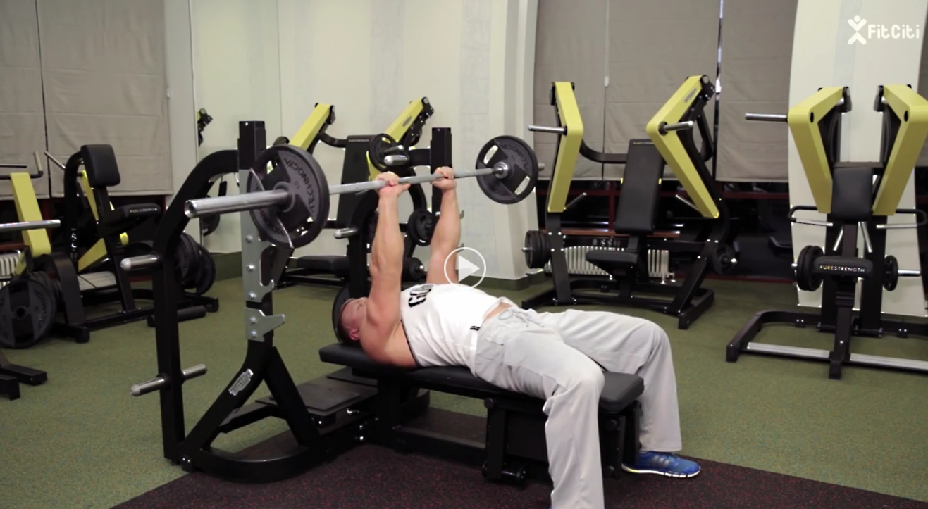 Көнүгүүлөрдү аткаруу техникасы. Тренажердо жатып штанганы басуу