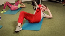 Көнүгүүлөрдү аткаруу техникасы. Аркасында бодибар менен жакка отуруу (кыздар)